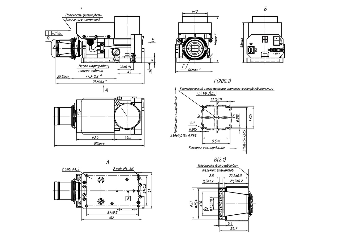 4.6 Габаритные и присоединительные размеры, расположение разъемов, вес изделия, входные апертуры и угловые поля отражены на габаритном чертеже.