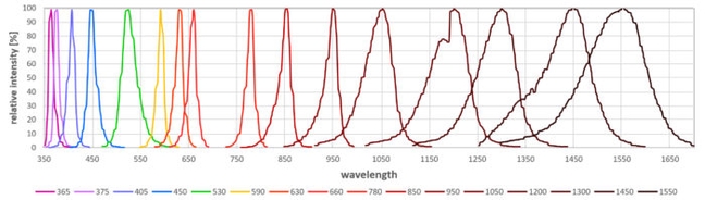 2) Максимальная длина волны светодиодов может зависеть от температурного дрейфа, который должен компенсироваться подходящими концепциями охлаждения (например, водное охлаждение).